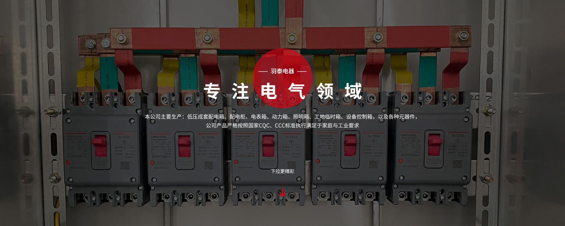 本公司坐落于人杰地靈,“中國制造之都“浙江省臺州市-黃巖。專注工業電氣領域,是一家集科研、生產、銷售為一體的較全方面型電氣企業。主要生產:低壓成套配電箱、配電柜、電表箱、動力箱、照明箱、工地臨時箱、設備控制箱,以及各種元器件。元器件主要有:雙電源自動轉換開關、塑料外殼式斷路器、小型斷路器、漏電斷路器;隔離開關、熔斷式隔離開關等,公司產品嚴格按照國家CQC,CCC標準執行,滿足于家庭與工業要求。我們秉承“電箱、元器件"一條龍服務。